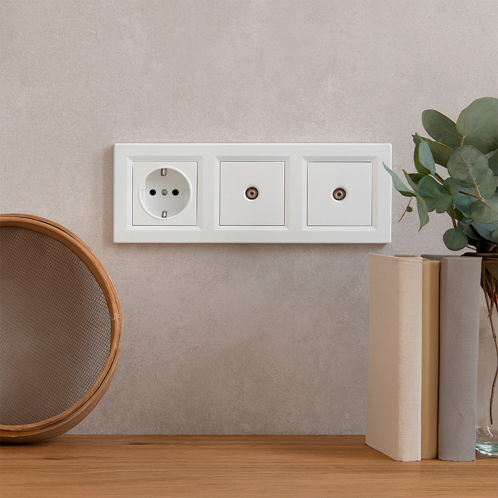 Rendeld meg most a Nova III földelt csatlakozóaljzatot kettő TV csatlakozóval, és egészítsd ki a rendszered stílusban és funkcióban is illeszkedő Nova keretekkel, kapcsolókkal, USB- és UTP aljzatokkal – minden, amire egy letisztult és megbízható beltéri szerelvényrendszerhez szükség van.