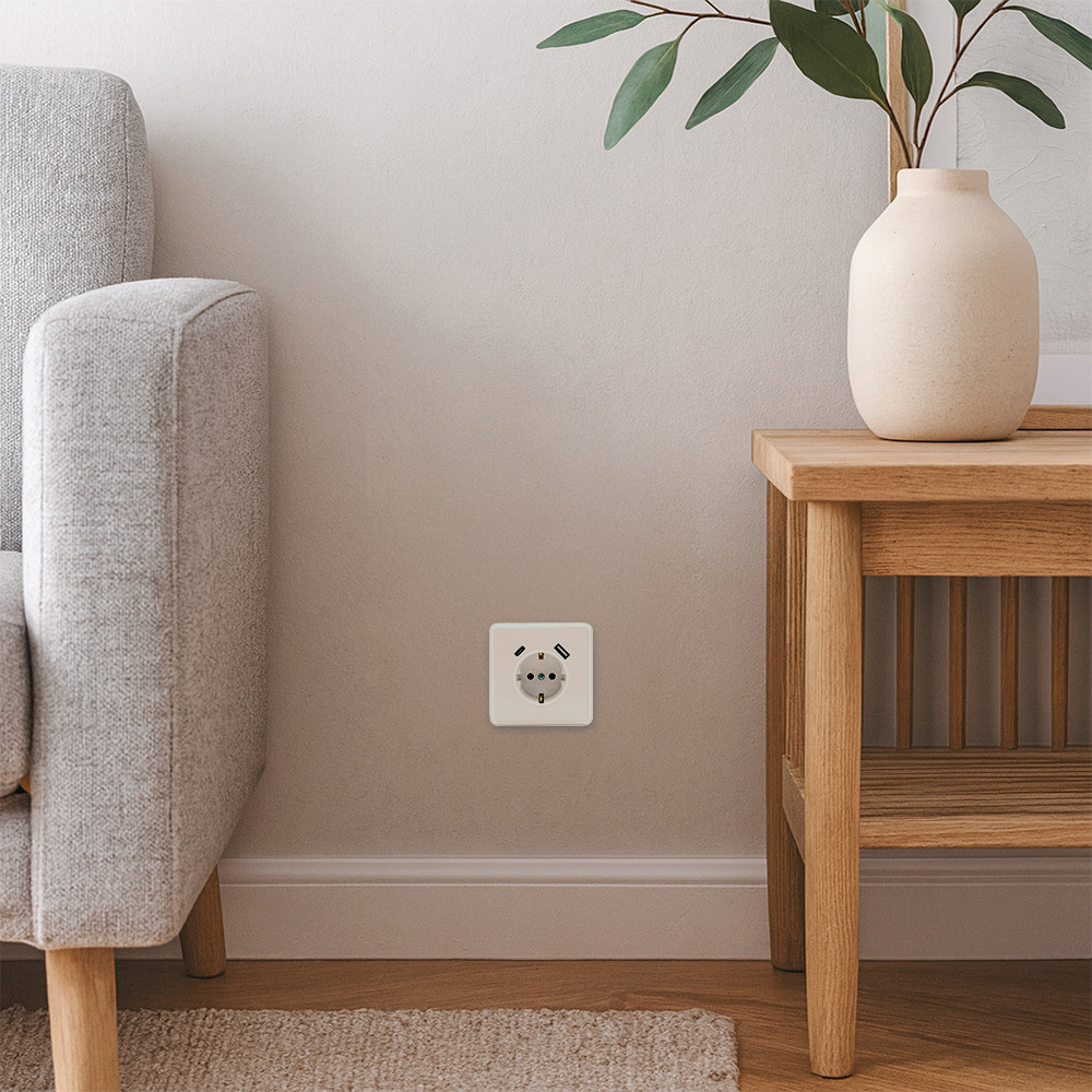 A Nova földelt csatlakozóaljzat beépített dupla USB töltőcsatlakozóval egyesíti a hagyományos 230 V-os hálózati csatlakozás és az USB töltés kényelmét. A német szabvány szerinti földelt aljzat 16 A névleges áramerősséggel és 250 V AC feszültségre készült, míg az USB portok összesen legfeljebb 2 A áramerősség leadására alkalmasak. Ideális kisebb fogyasztású eszközök (mobiltelefon, fülhallgató, okosóra) töltésére, külön adapter használata nélkül. A termék süllyesztett kialakítású, csavaros rögzítésű, és szabványos szerelvénydobozba illeszthető. Keret nélküli moduláris kivitele lehetővé teszi a többes keretrendszerekbe való beépítést. IP20-as védettségének megfelelően kizárólag pormentes, száraz beltéri környezetben alkalmazható (pl. nappali, hálószoba, iroda). A villamos csatlakoztatást csak érvényes szakirányú képesítéssel rendelkező villanyszerelő végezheti a vonatkozó szabványok szerint.