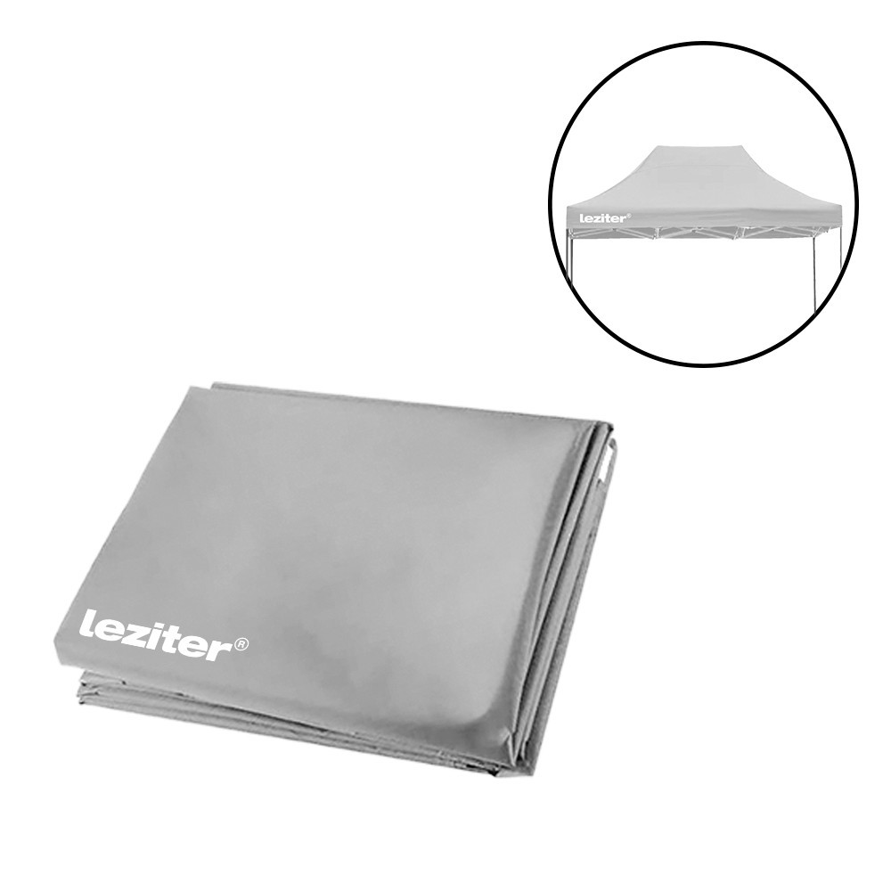 A Leziter 3x4 méteres pavilon tetőponyvája 420D Oxford szövetből készül, amely PVC bevonatának köszönhetően vízlepergető és UV-álló. A négy oldalon elhelyezett Leziter logó igényes megjelenést ad, bármilyen rendezvényen. A szürke szín elegáns, harmonizál a kerted stílusával. Ez a ponyva könnyen cserélhető, így egy hirtelen jött meghívás vagy tervezett esemény előtt is pillanatok alatt megújíthatod pavilonod tetőjét.