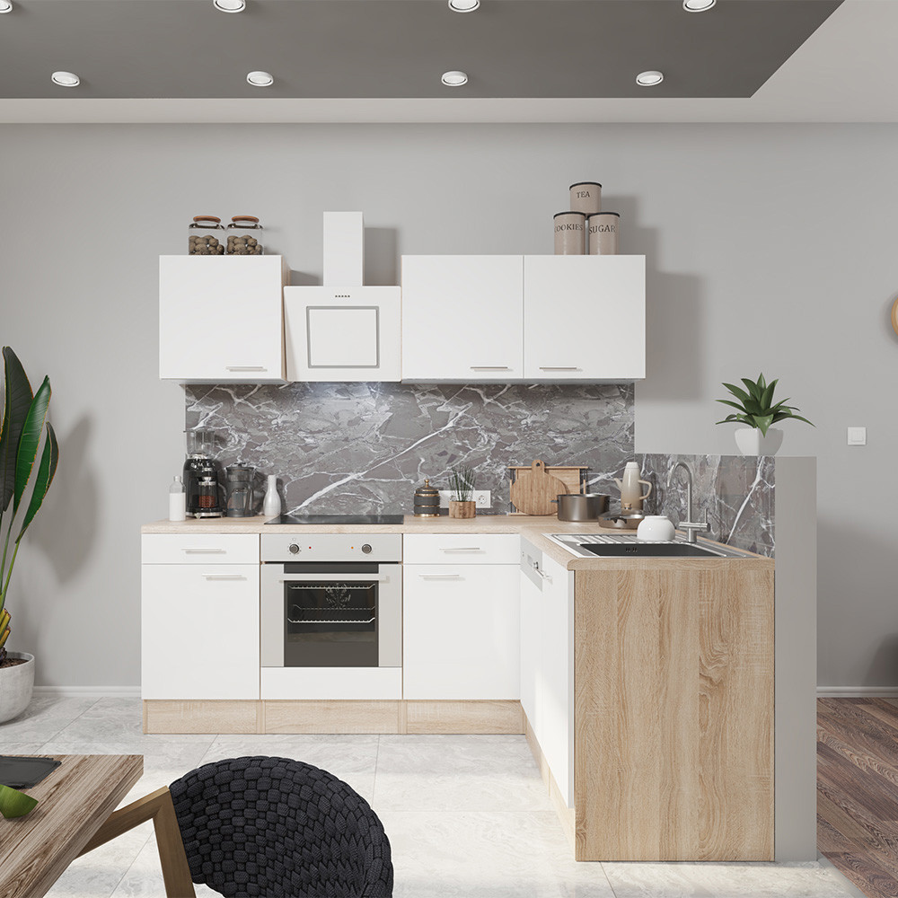 Minőségi hazai gyártású moduláris konyhabútor, mely kielégíti bármely kedves vásárló igényét. Laminált 16 mm-es bútorlapból készülő korpusz, sonoma tölgy színben. Összeszerelve kellően masszívvá a köldökcsapok, és a konfirmátor csavarok teszik. A munkapult az elemek tetejére egyben kerül legyártásra, mely 28mm vastag.