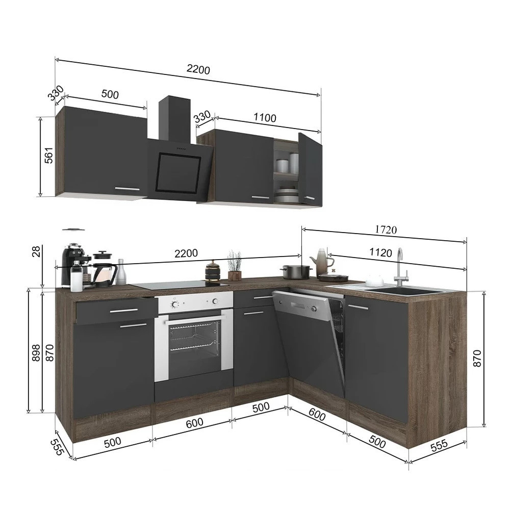 Minőségi hazai gyártású moduláris konyhabútor, mely kielégíti bármely kedves vásárló igényét. Laminált 16 mm-es bútorlapból készülő korpusz, yorki tölgy színben. Összeszerelve kellően masszívvá a köldökcsapok, és a konfirmátor csavarok teszik. A munkapult az elemek tetejére egyben kerül legyártásra, mely 28mm vastag.