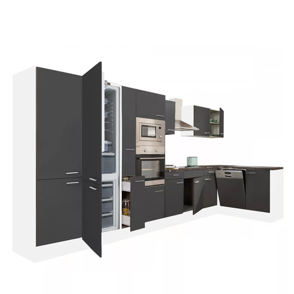 Yorki 430 sarok konyhablokk fehér korpusz,selyemfényű antracit fronttal. A tökéletes konyha megteremtője!