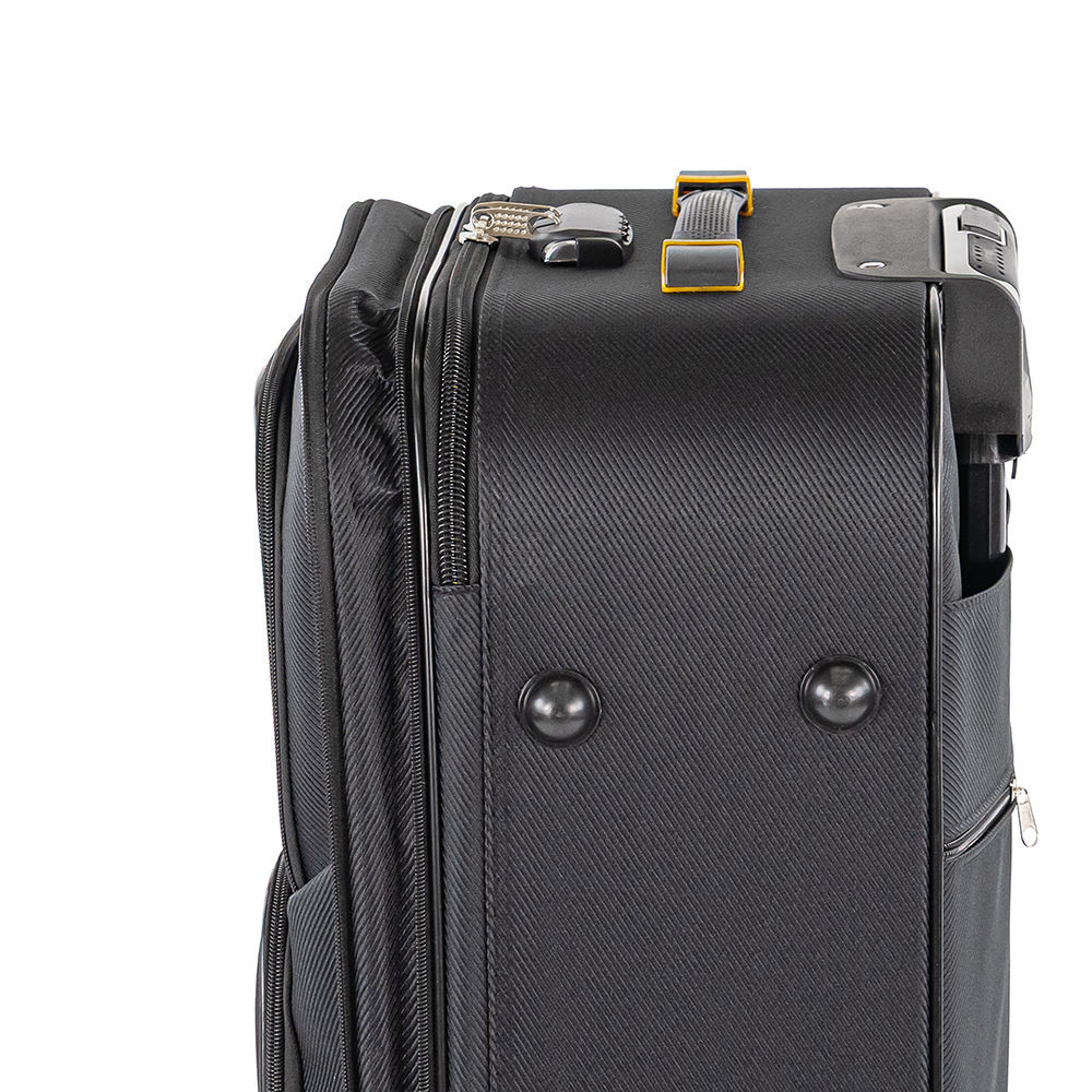 A fém teleszkópos kar stabil és könnyen állítható, így a bőröndök húzása minimális erőfeszítést igényel. A felső és oldalsó ergonomikus fogantyúk megkönnyítik az emelést és szállítást – mind a közepes, mind a kabinméretű változat esetében.