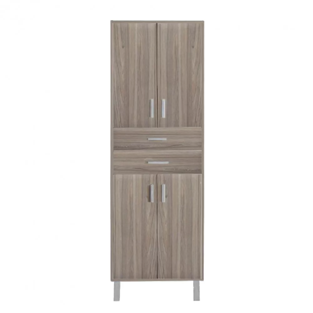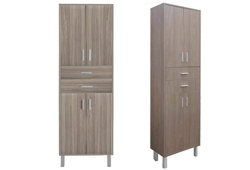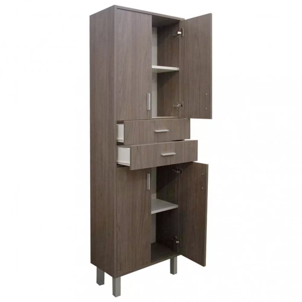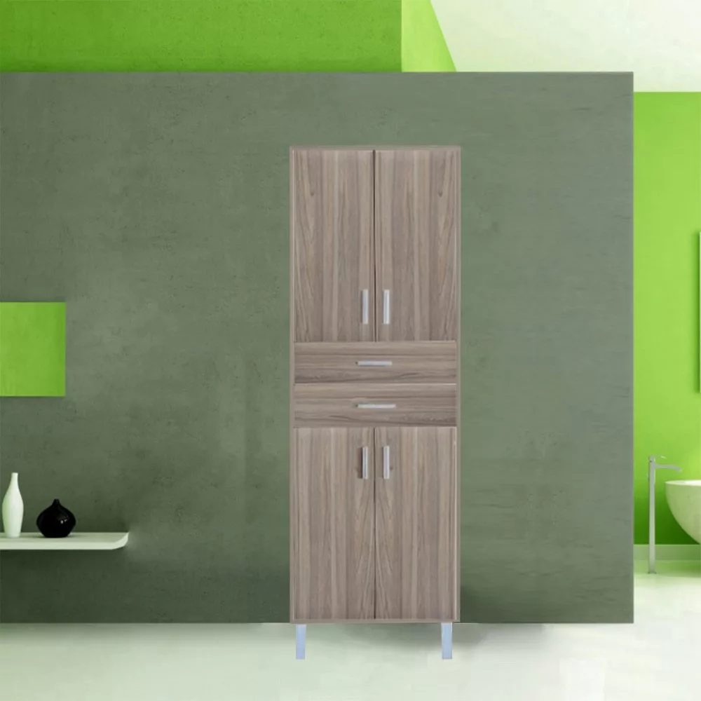 A fürdőszoba bútor kevés helyet foglal viszont rendelkezik két darab két ajtós szekrénnyel és két tágas fiókkal ahol kényelmesen elférnek a fürdőszobai pipere eszközök. Kevés helyigénye miatt kisebb fürdőszobák berendezésére is alkalmas, például panel lakásokban. A termék magas minőségű bútorlapból készül és színben passzoló élzárókkal van ellátva. A fürdőszoba bútor álló kivitelben kapható.