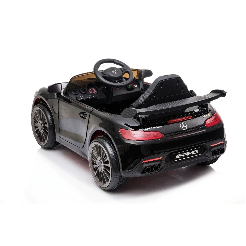 Fedezd fel a fekete színű AMG GTR Mercedes-Benz elektromos autót, amely a legkisebbek számára is kényelmes és biztonságos vezetési élményt nyújt. Az autót két módon lehet irányítani: a szülő távirányítóval vagy a gyermek önállóan a gázpedál és a kormány segítségével. Távirányítással a szülők felügyelhetik a sebességet és irányítást.