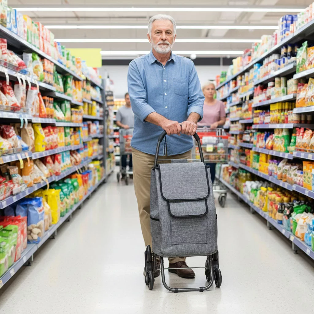 A mindennapokban igazán az számít, ami megkönnyíti a dolgokat – és pontosan ezt nyújtja a ModernHome bevásárlókocsi. Ez kényelmet, önállóságot és biztonságérzetet nyújtkülönösen azoknak az időseknek, akik nehéz táskák cipelése nélkül szeretnék kényelmesen intézni napi teendőiket. A kocsi könnyedén gurul és egyenletesenmiközben a megerősített aljú, tágas táska biztonságosan tárolja a bevásárlást. Praktikus segítség bevásárláskor, piaci látogatásoknál vagy a postára menet – olyan megoldás, amely egyszerűbbé és kevésbé megterhelővé teszi a napi feladatokat.
