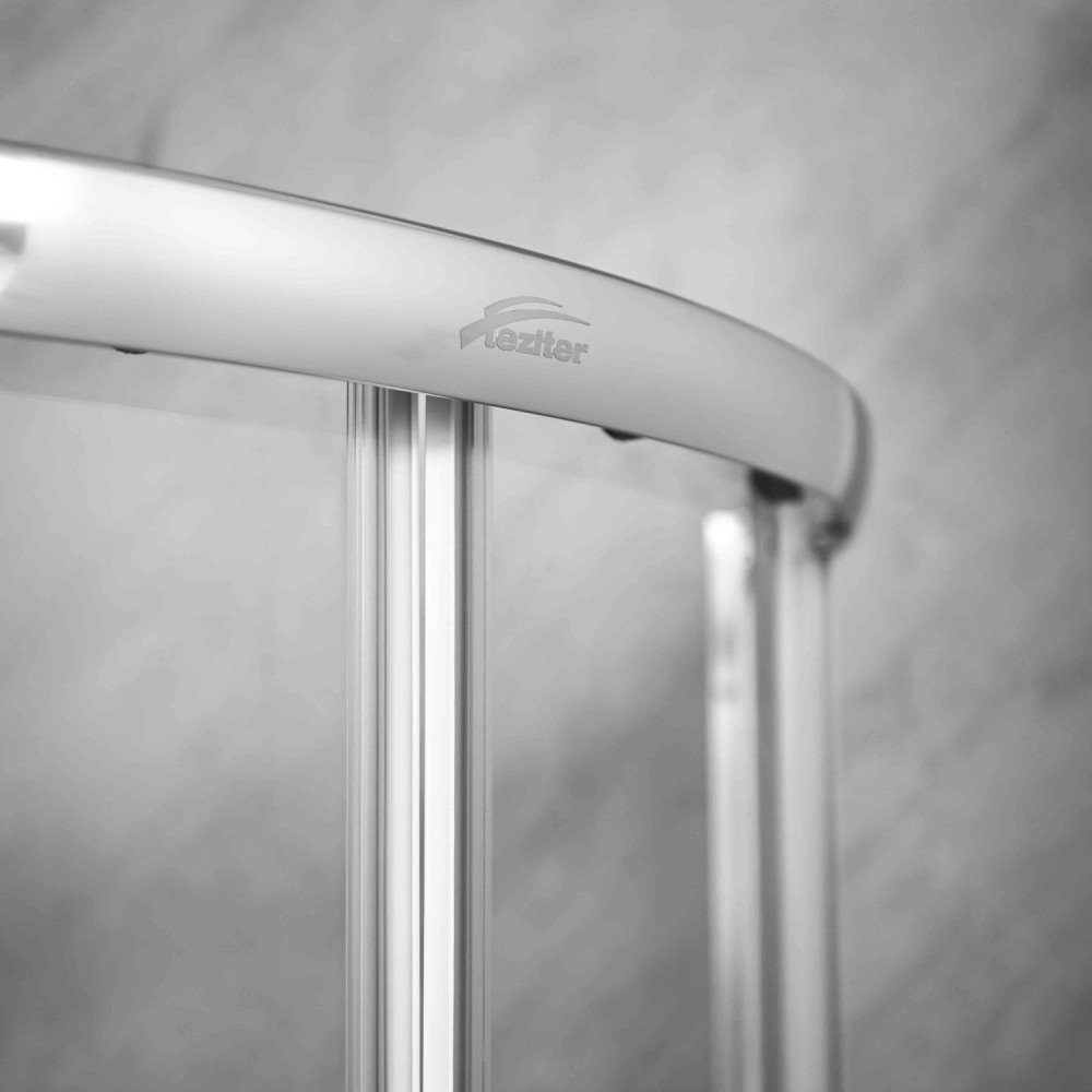 A Leziter Spirit Clear zuhanykabin íves formája végett illeszkedik a sarokba, így helytakarékos elrendezést kínál, miközben tágas és kényelmes zuhanyzási teret biztosít. A selyemfényű alumínium profilok és a 16 cm-es fém fogantyúk stabil, masszív szerkezetet adnak, amely hosszú távon is megőrzi formáját és elegáns megjelenését. A víztiszta biztonsági üveg világos felületet alkot, amely megőrzi a tér nyitottságát, letisztult, modern megjelenést biztosítva a fürdőszobának.
