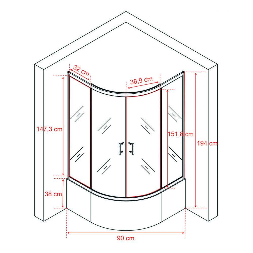- Típus: Íves zuhanykabin mély zuhanytálcával