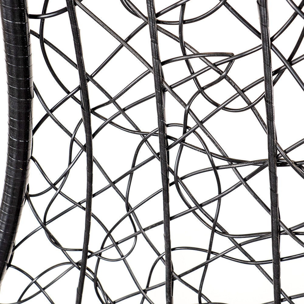 A kosár sűrű szövésű PE rattanból készül, amely az esztétitkai előnyök mellett, időjárásálló is. A fekete színű rattan anyag ellenáll a szélsőséges időjárási körülményeknek, így a függőfotel hosszú távon is megőrzi szépségét.