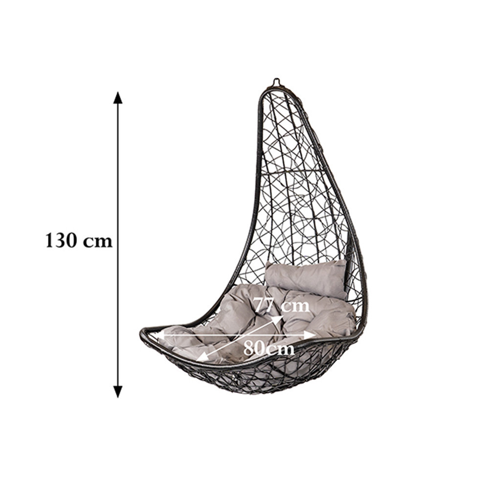Maximális kényelem: A függőfotel ergonomikus, mély kialakítású kosara kellemesen körülölel, a hozzá tartozó kétrészes szürke párna pedig puha gyöngypamut töltettel készült, így megfelelően alátámasztja a hátat és a fejet. Hosszabb olvasáshoz, délutáni pihenéshez vagy esti relaxációhoz is ideális.
