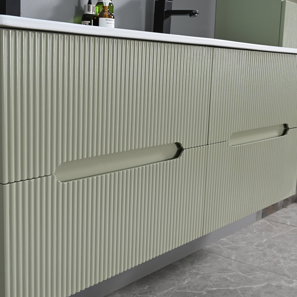 A Leziter Trent fürdőszobabútor harmonikusan ötvözi a látványt és a praktikumot. A bordázott előlap letisztult, modern karaktert ad, miközben az integrált fogantyú kényelmes használatot tesz lehetővé. A fali rögzítés könnyed megjelenést teremt, a padló takarítása pedig gyorsabbá válik.