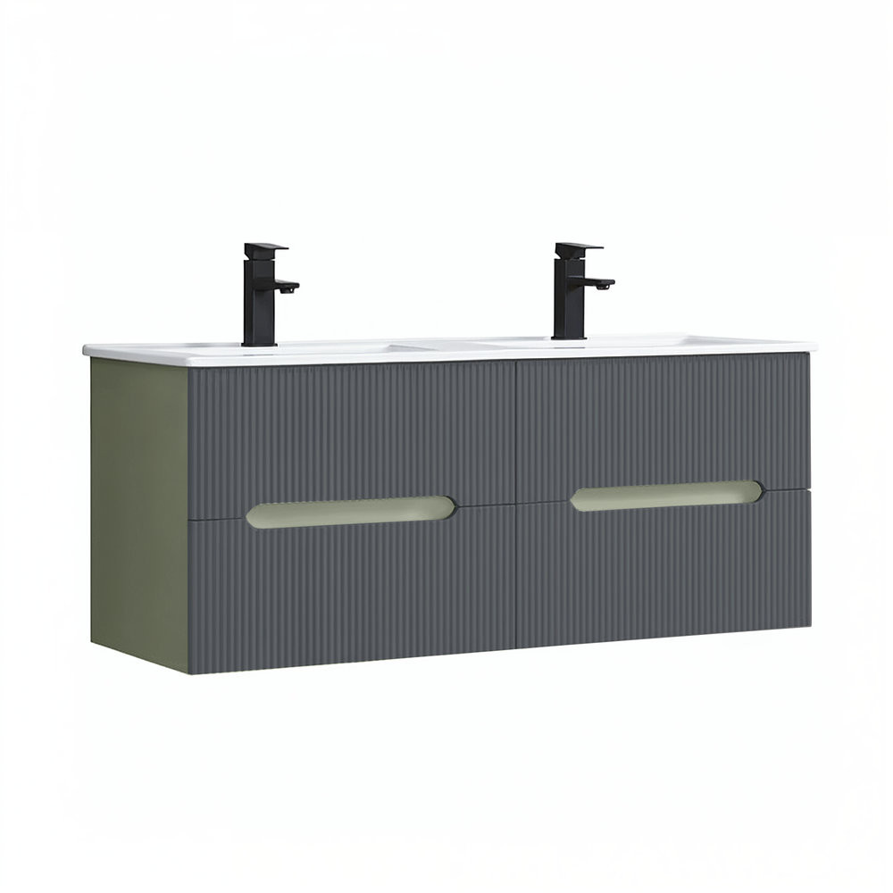 Leziter Trent Fürdőszobabútor 120 cm kerámia mosdóval (4 fiókos) Olivazöld - Antracit szürke