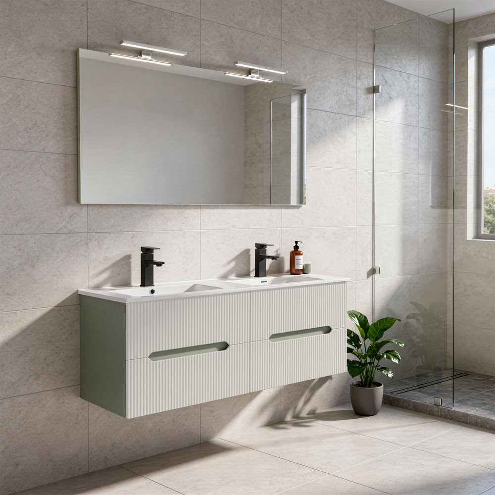 Leziter Trent Fürdőszobabútor 120 cm kerámia mosdóval (4 fiókos) tükörrel Olivazöld - Fehér