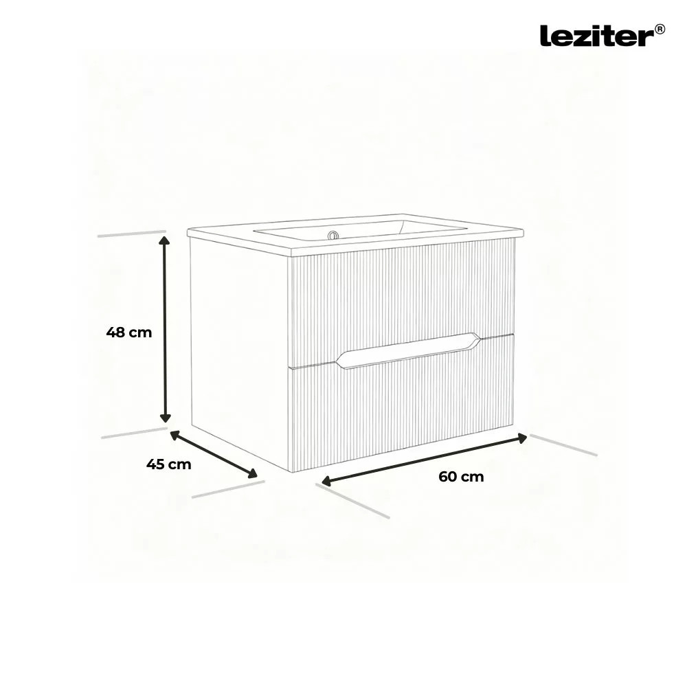 A Leziter Trent fürdőszobabútor harmonikusan ötvözi a látványt és a praktikumot. A bordázott előlap letisztult, modern karaktert ad, miközben az integrált fogantyú kényelmes használatot tesz lehetővé. A fali rögzítés könnyed megjelenést teremt, a padló takarítása pedig gyorsabbá válik.