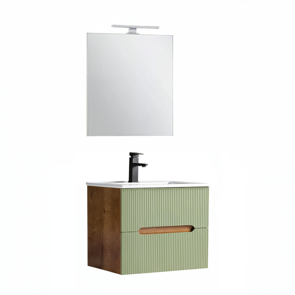 Leziter Trent Fürdőszobabútor 60 cm kerámia mosdóval (2 fiókos) tükörrel Sunset tölgy - Pisztáciazöld