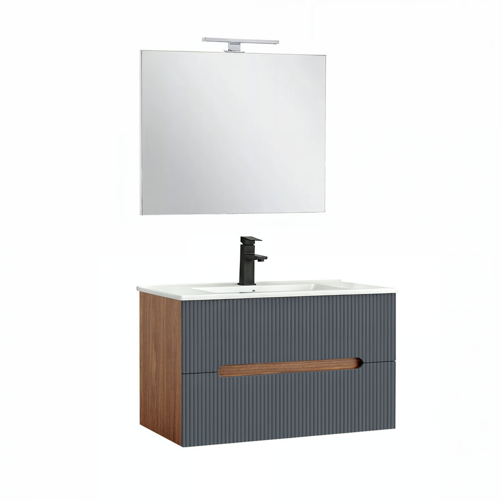 Leziter Trent Fürdőszobabútor 80 cm kerámia mosdóval (2 fiókos) tükörrel Sunset tölgy - Antracit szürke