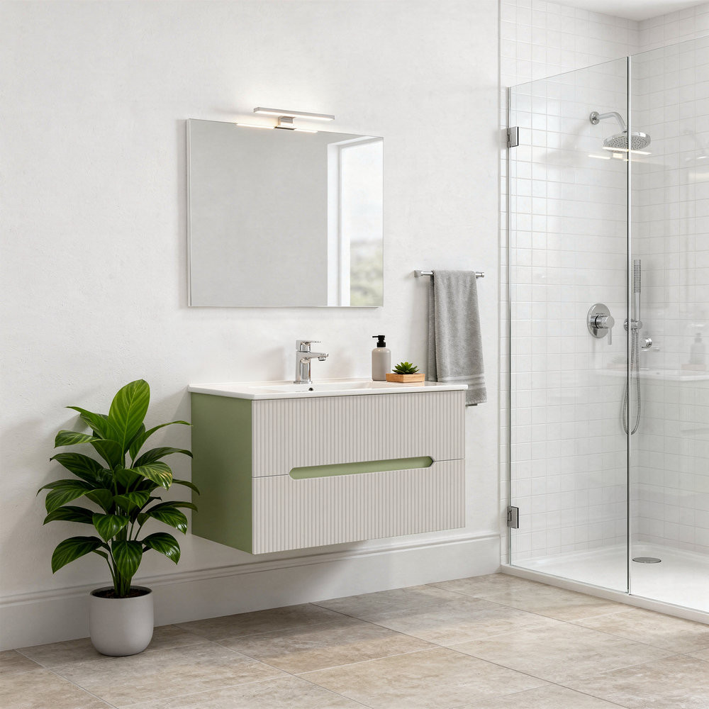 Leziter Trent Fürdőszobabútor 80 cm kerámia mosdóval (2 fiókos) tükörrel Pisztáciazöld - Fehér