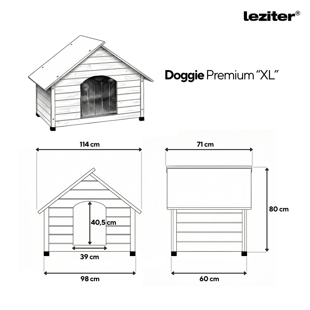 A Leziter Doggie Premium hőszigetelt kutyaház stabil szerkezete hosszú élettartamot biztosít. A szürke színű, fenyőfa felület külső modern és letisztult megjelenést ad a kutyaháznak, amely jól illeszkedik a legtöbb udvari környezetbe.