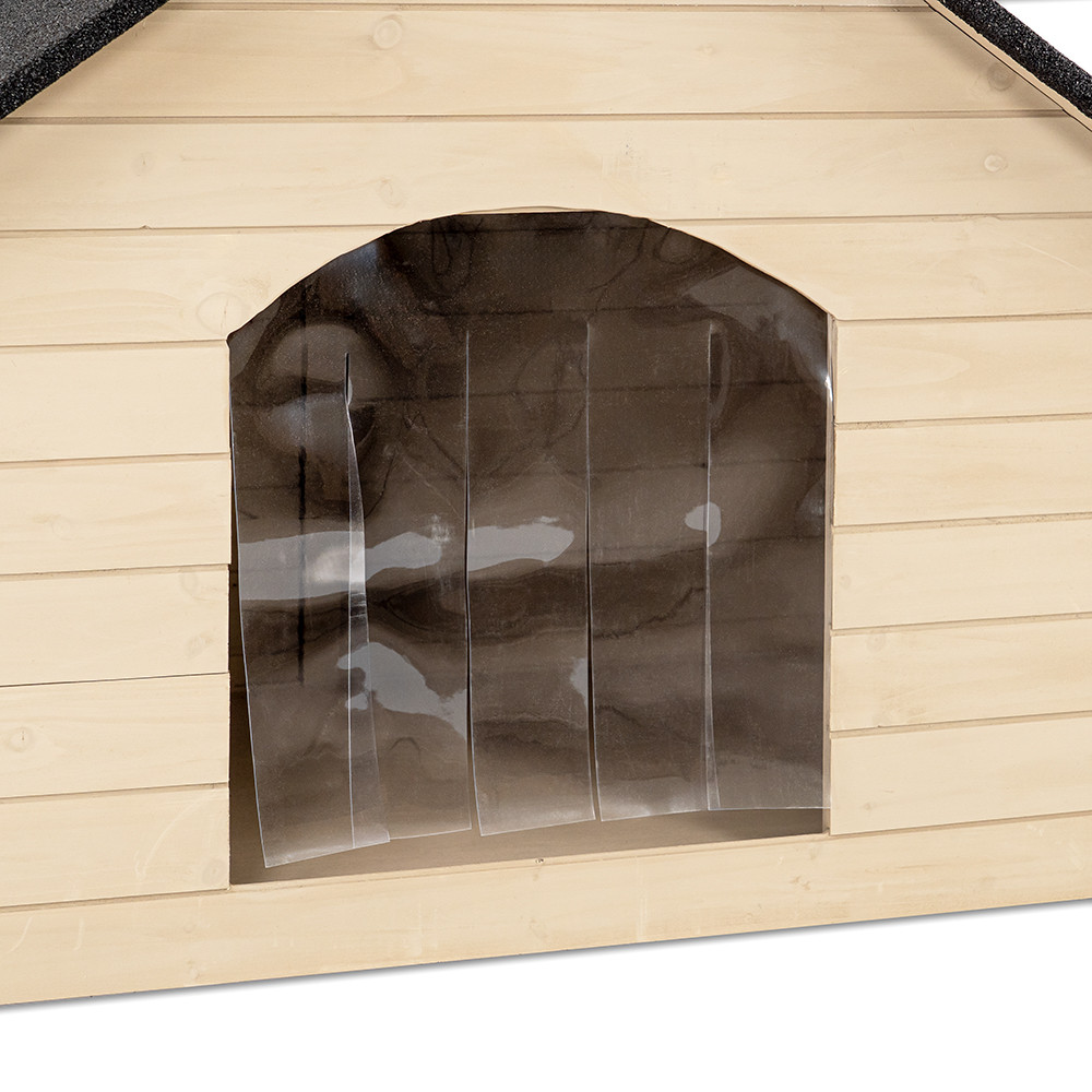 Az öt darab kátránypapírral borított láb megemeli a házat a talajtól, védelmet nyújtva a nedvesség és a korhadás ellen. A lapra szerelt kivitel egyszerű szállítást és gyors összeszerelést tesz lehetővé, miközben a mellékelt hővédő ajtó megakadályozza, hogy a hideg levegő, az eső vagy a szél bejusson a belső térbe. Így kedvenced télen-nyáron kényelmes, száraz és biztonságos helyen pihenhet.