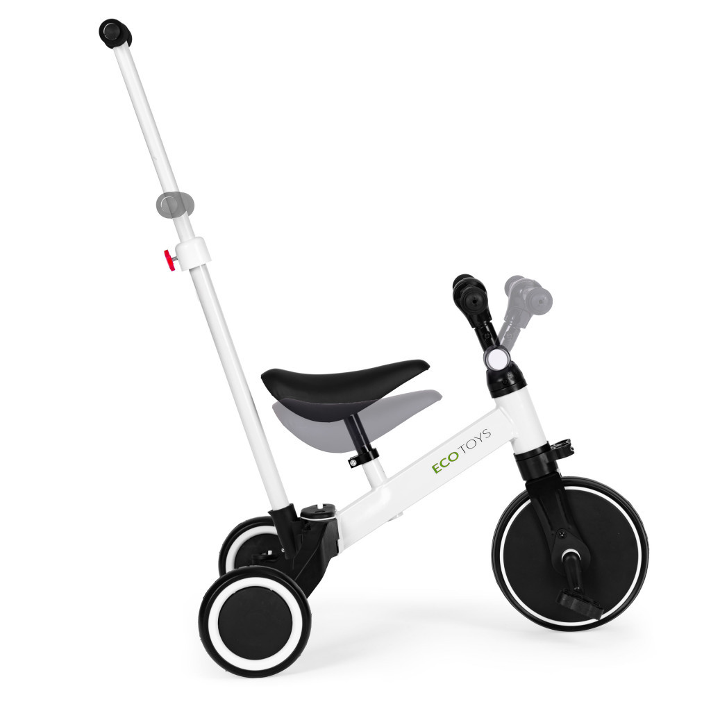 A futóbicikli hagyományos, pedálokkal hajtott biciklivé alakításának lehetősége lehetővé teszi a gyermek számára, hogy biztonságosan elkezdje elsajátítani az ilyen típusú kerékpárok vezetését. A puha nyereg és a csúszásmentes markolatok kényelmes játékot biztosítanak órákon át. A kerékpár kerekei átszúrásálló EVA-ból készültek, így otthon és sétákon is használhatók.