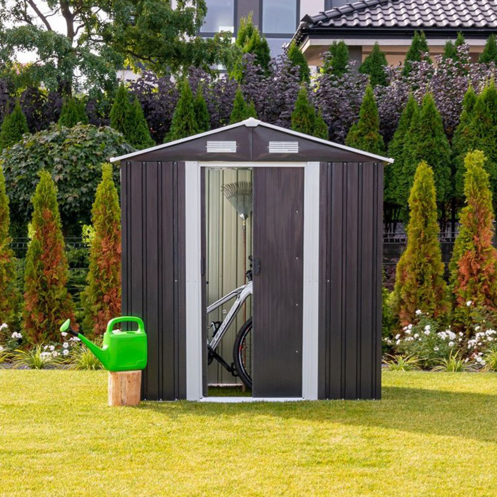 A fémlemez szerszámházak a kert alapvető felszerelései. A kerti tároló tökéletes hely a kerti szerszámok és felszerelések, például fűnyírók tárolására. Méretének köszönhetően a kerti házban könnyen elférnek praktikus felszerelések is.