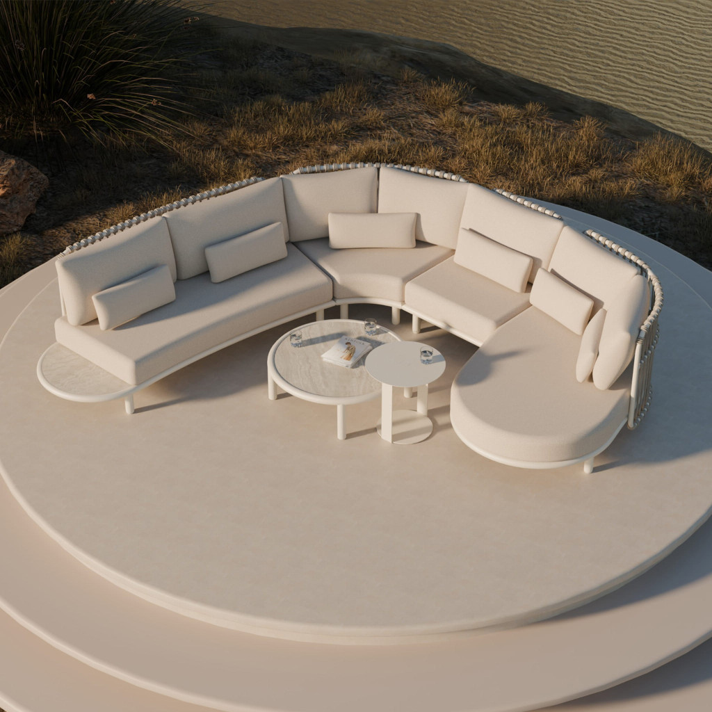 Az Es Vedra kollekció kisebb, hatrészes változatát olyan terekbe tervezték, amelyek maximális funkcionalitást igényelnek az esztétika feláldozása nélkül. A modulok szabadon kombinálhatók kényelmes kanapévá, sarokkanapévá, vagy független ülőhelyekké alakíthatók. Ez az elrendezés lehetővé teszi, hogy a bútorok illeszkedjenek a terasz, a kert vagy a veranda méretéhez , miközben megőrzik Maciej Zień terveire jellemző koherenciát és eleganciát.